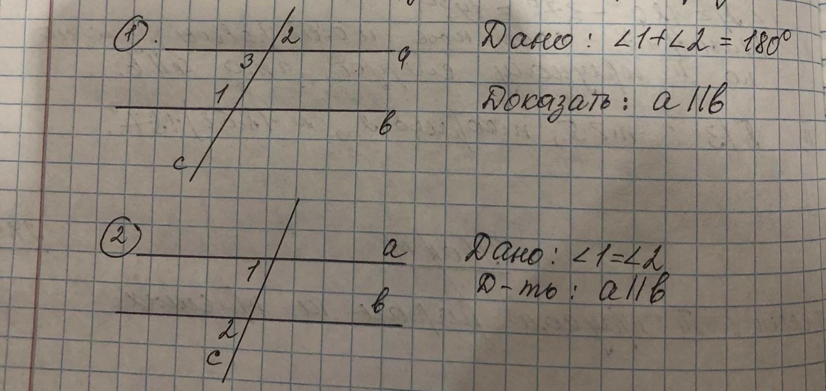 Объяснение: 1) 1. Угол 2 = угол 3 (вертикальные) --> угол 1 + угол 3 = 180 градусов (односторонние) --> прямая А параллельна прямой B