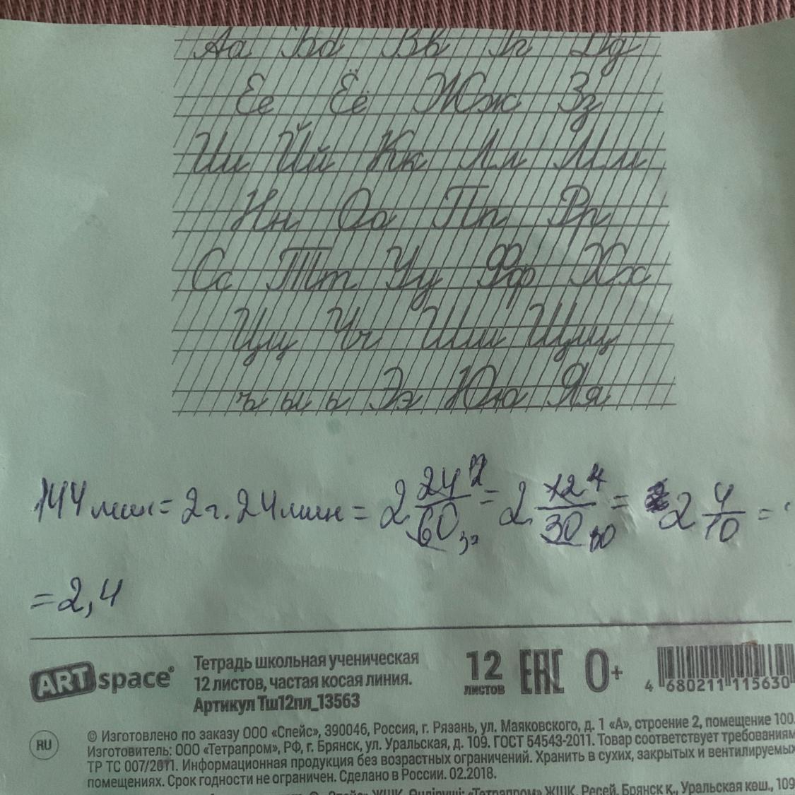 144 мин =2ч. 24 мин = 2 24/60= 2 4/10 = 2,4