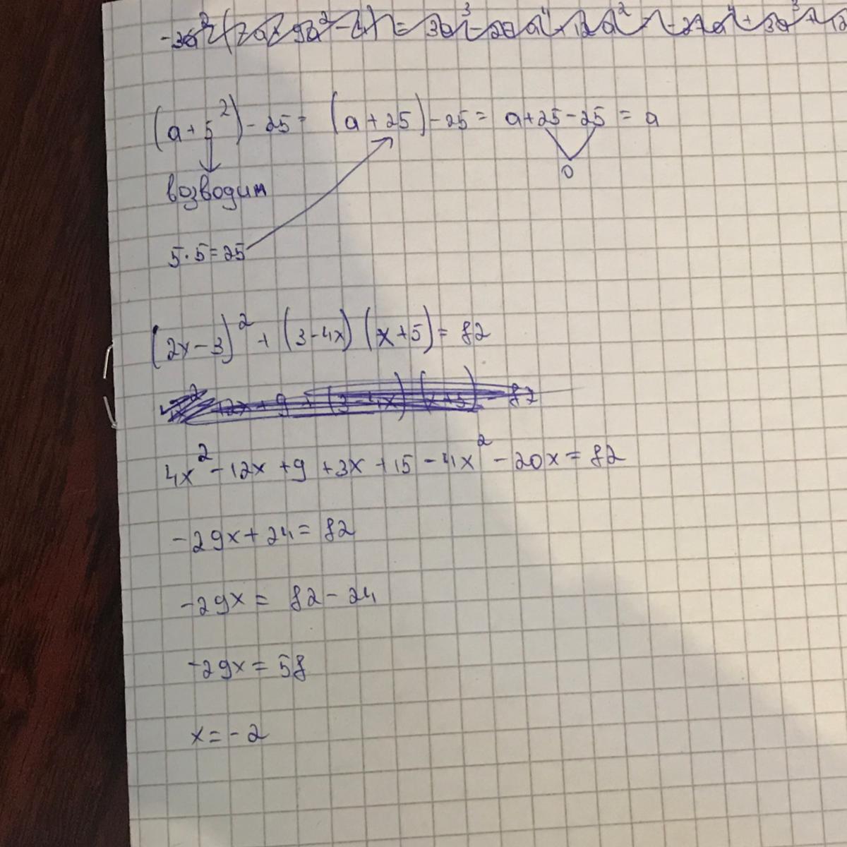 (2x-3)²+(3-4x)(x+5)=82