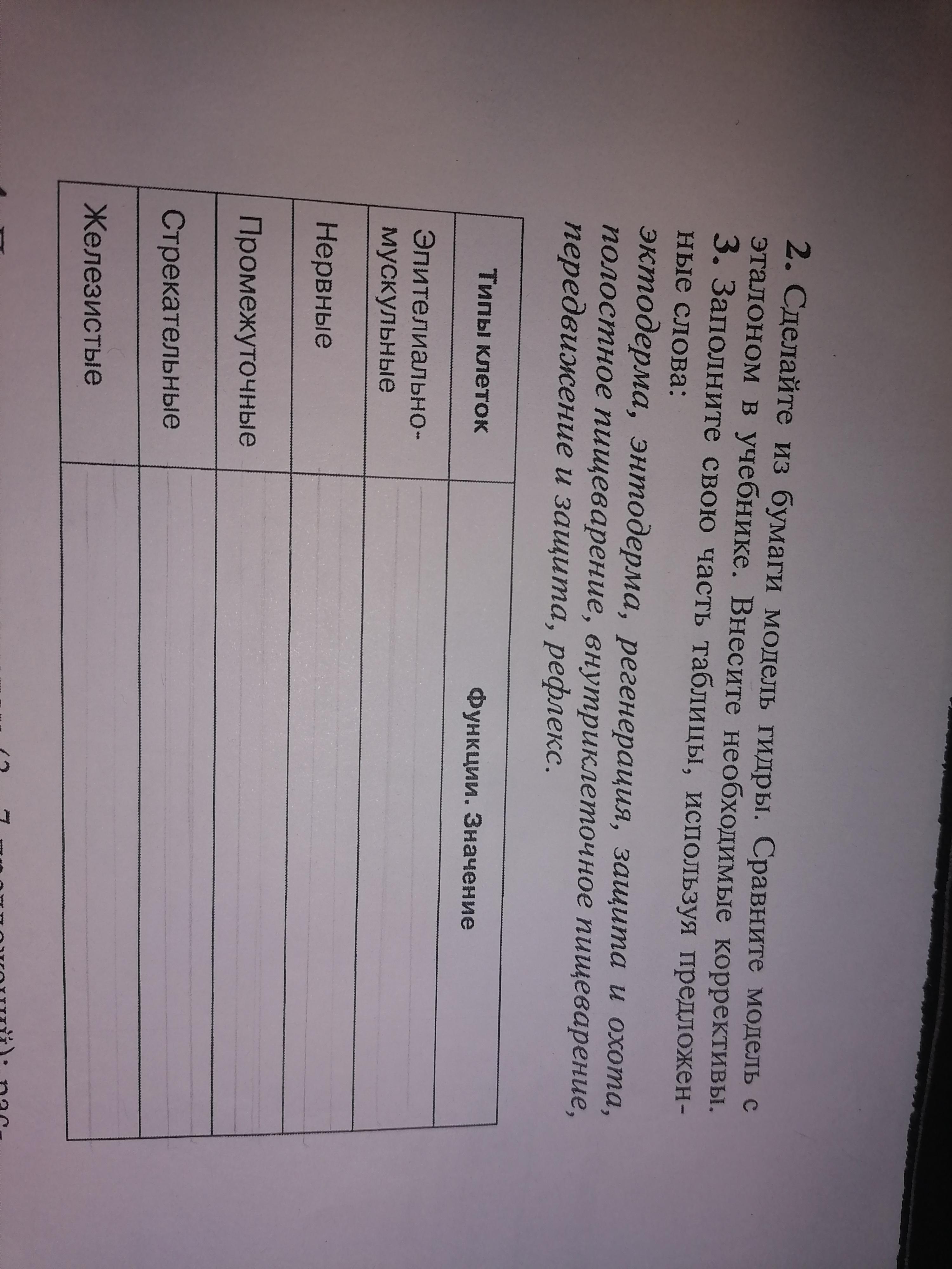 заполните свою часть таблицы используя предложенные слова эктодерма энтодерма регенерация защита