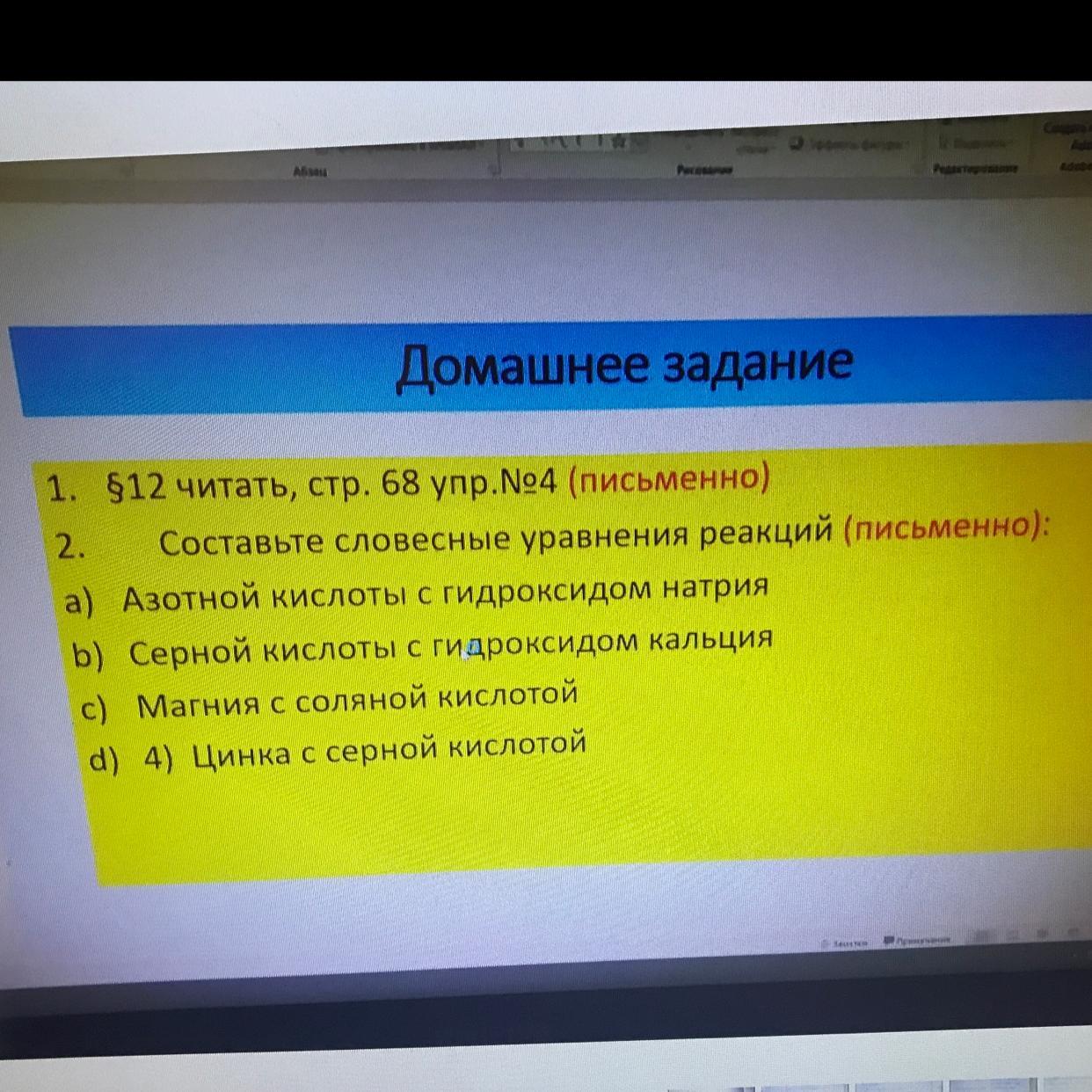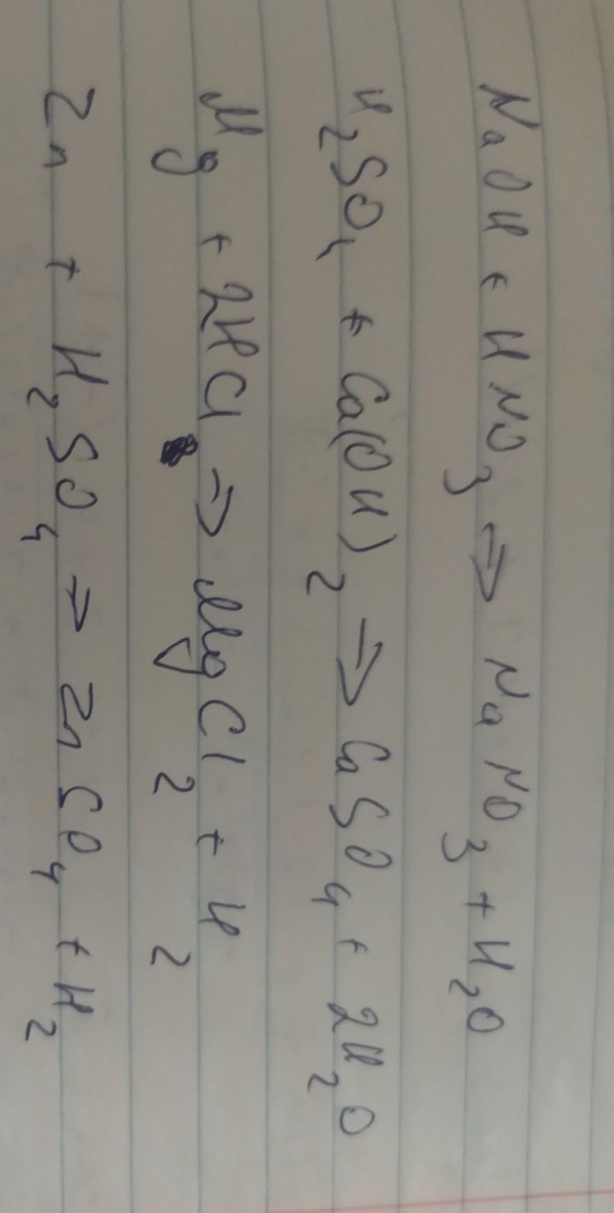 В 1 ом Нитрат Натрия и Вода. 2 Сульфат Кальция и 2 атомы Воды. 3 Хлорид магния и Водород. 4. Сульфат цинка и Водород