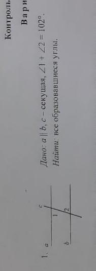 угол 1 = углу 2 так как они на крест лежащие значит 102:2=51