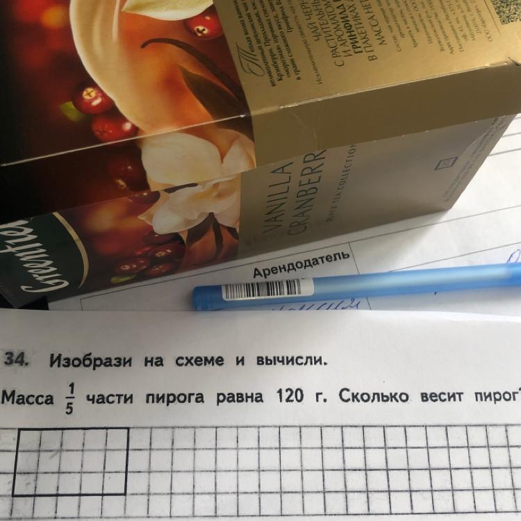 Если пятая часть пирога весит 120г, то целый пирог весит в пять раз больше.