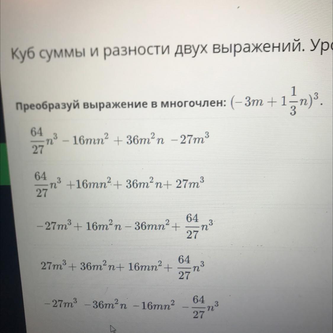 64/27n³-3*3*1616/9n²m+3*9*4/3nm²-27m³=64/27n³-16n²m+36nm²-27m³