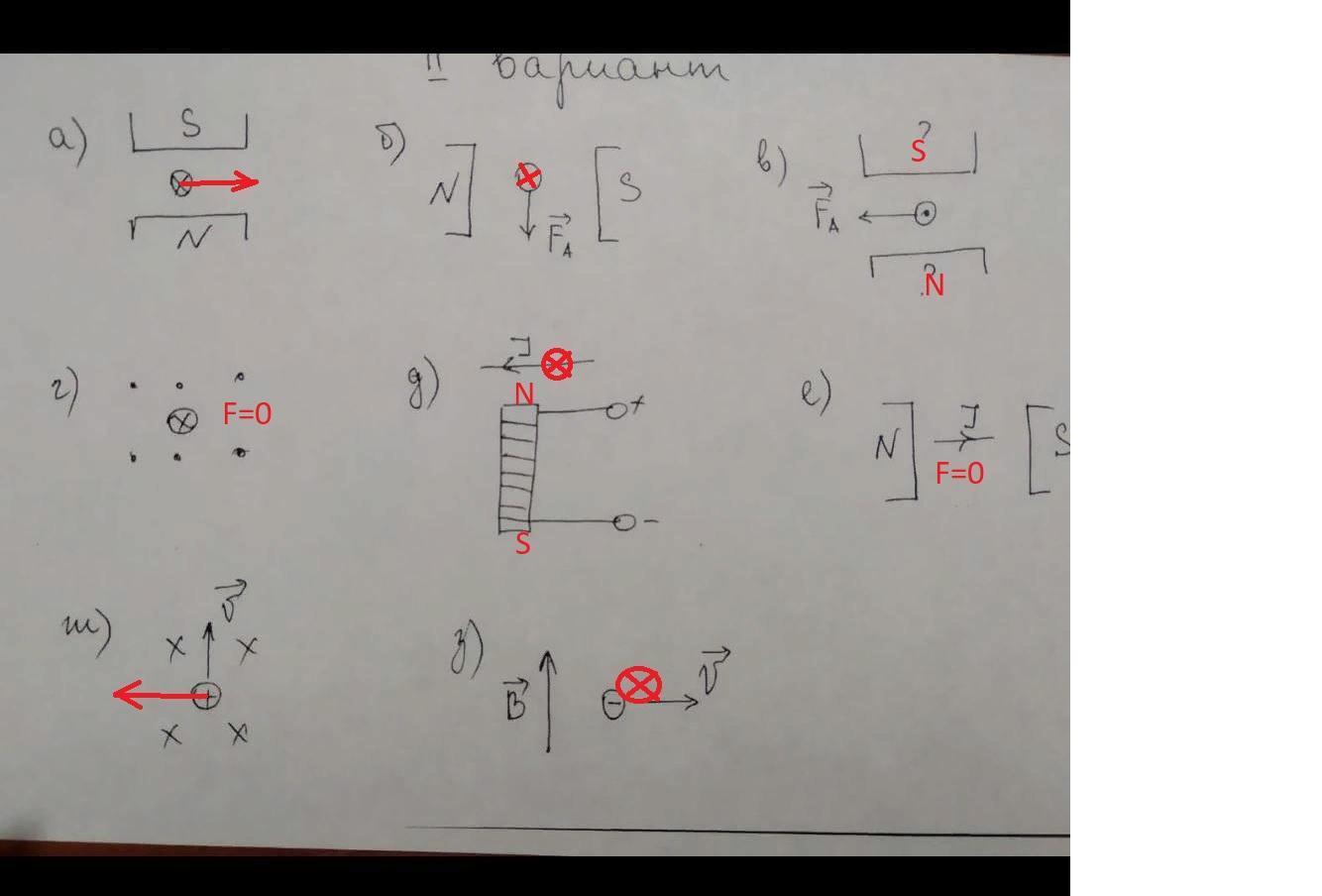 Выполните ЧЁТНЫЕ НОМЕРА (Б, Г, Е, З) , укажите силовую линию, направление тока или знак заряда и силу Ампера или Лоренца.