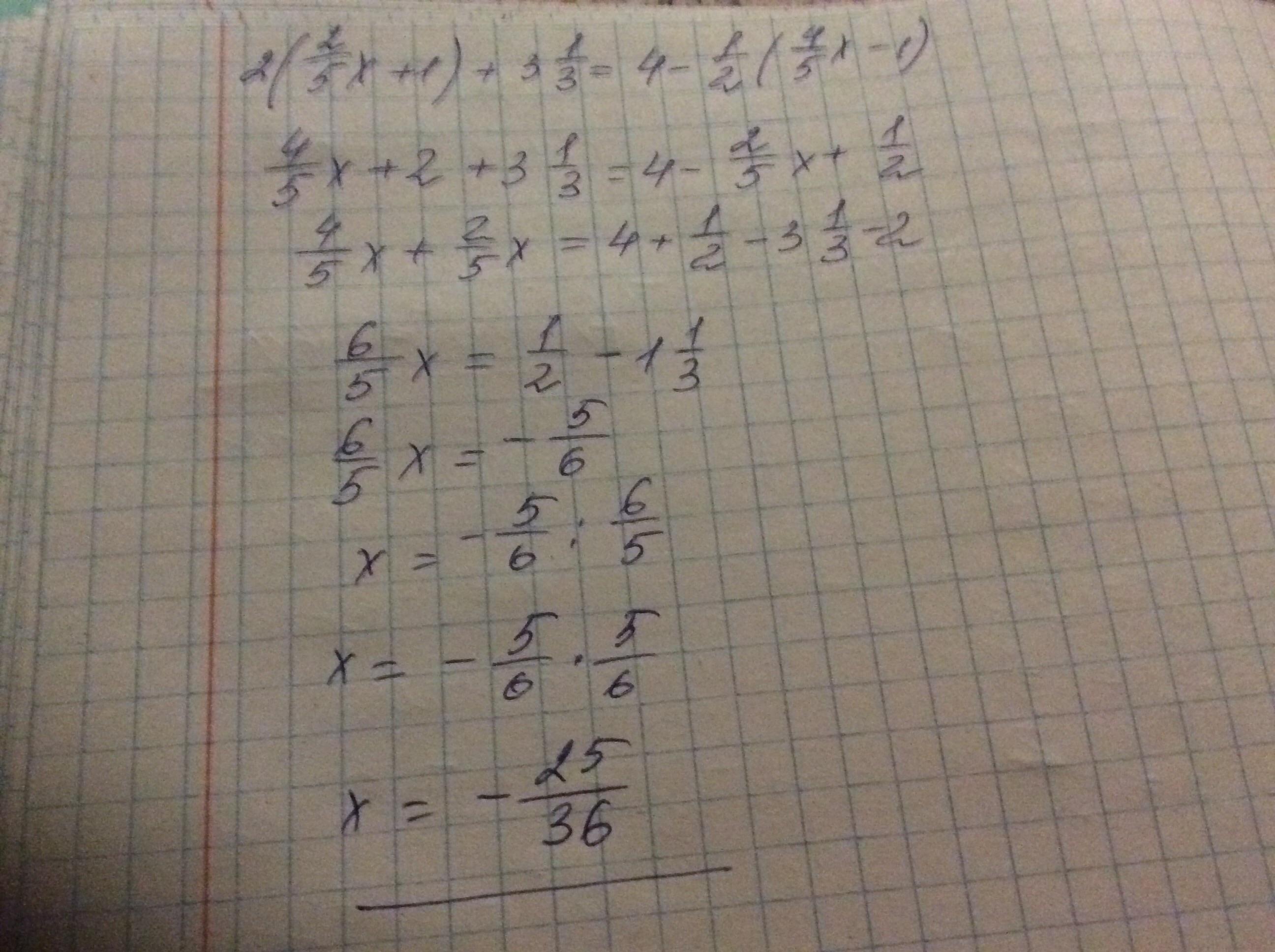 2×(2/5x+1)+31/3=4-1/2×(4/5x-1)​