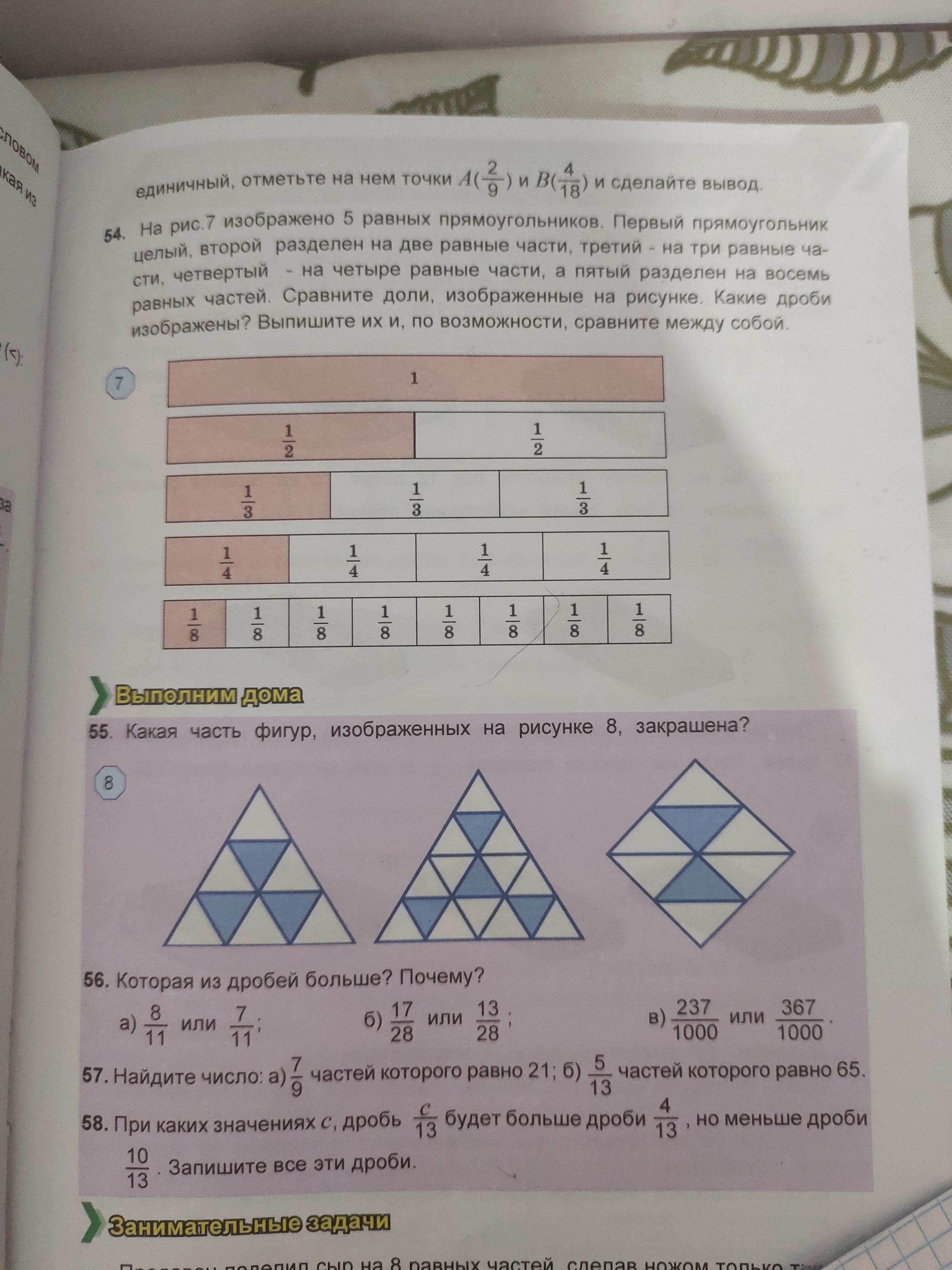 1-й треугольник разбит на 9 равных малых треугольников, 3 из которых закрашены: