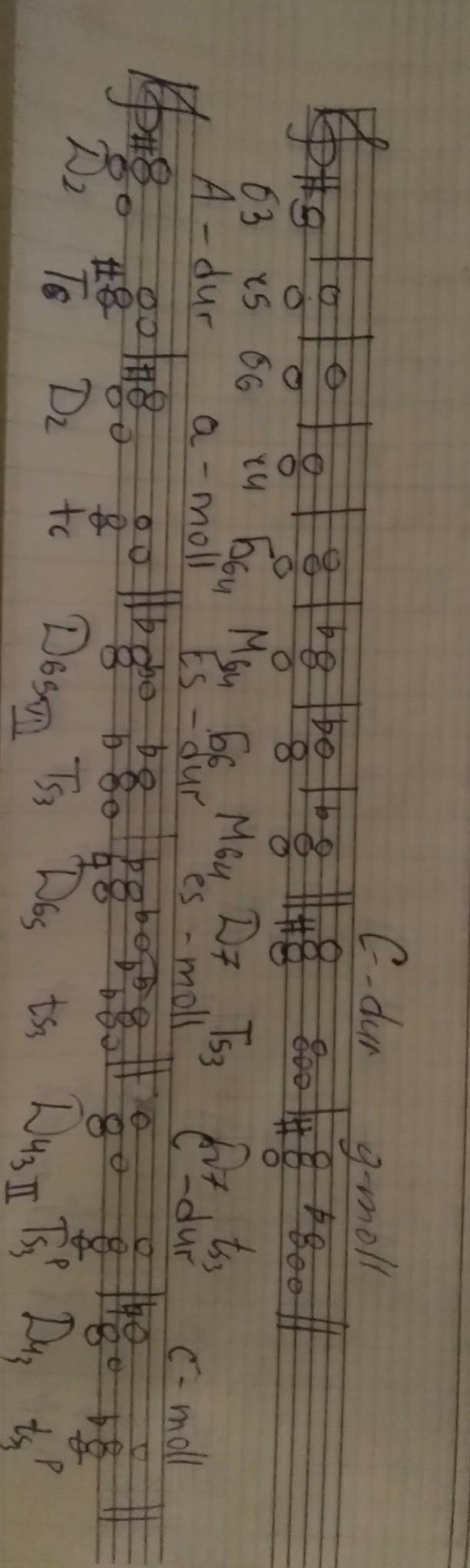 Построить от ноты "ре" Б3, ч5, б6, ч4, Б6/4, М6/4, Б6, М6/4, Д7, Д2, Д6/5, Д4/3. Аккорды необходимо разрешить.