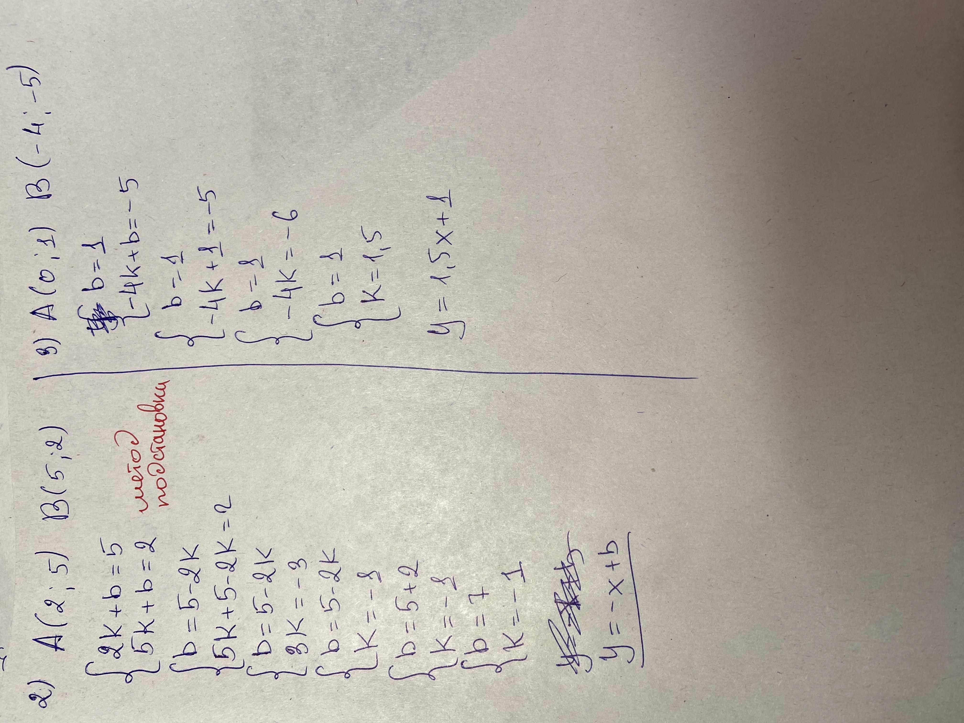 Составьте уравнение АВ которая проходит через точки: 1)А(1;7) и В(-3;-1) , 2)А(2;5) И В(5;2), 3)А(0,1) И В(-4;-5).