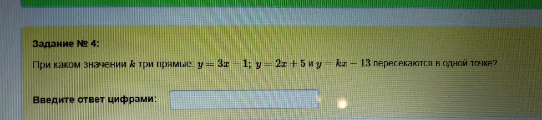 Чтобы график y = kx-13 пересекался с графиками y = 3x-1 ; y =2x+5