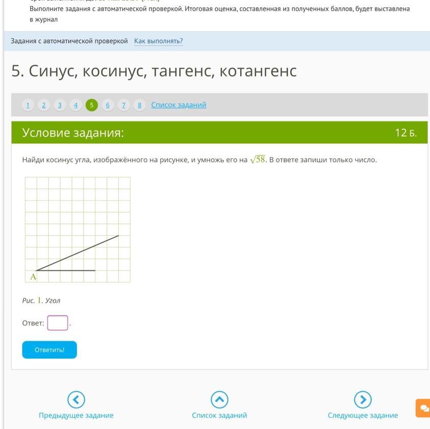 cosA=а/c=7/(корень58)