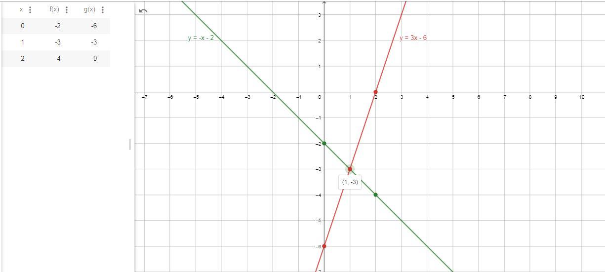 Находим точку пересечения (1; - 3)