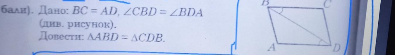 ВD- общая сторона треугольников ∆АВD и ∆CDB.