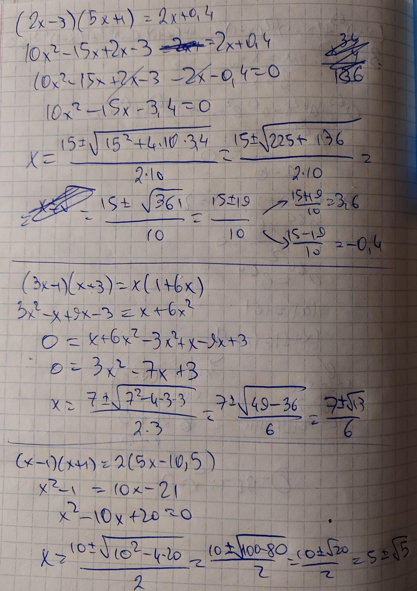 а) ( 2х - 3 ) ( 5х + 1 ) = 2х +0,4