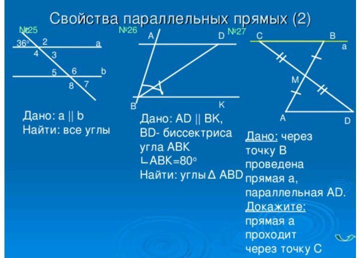 3) Углы CMB и AMD равны (как вертикальные). СМ = MD, AM = MB (по условию). Следовательно, треугольники MBC и MAD равны за 2 сторонами и углами между ними. Значит, CB = AD и CB||AD. Но AD||a и а проходит через В, значит прямая проходит через С тоже