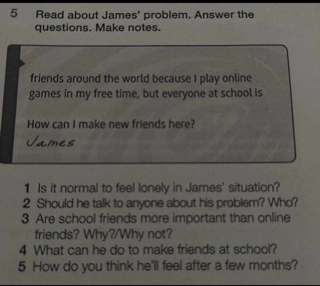 1) Yes, its normal to feel lonely in James' situation, because in my opinion, online friendship can be not for everyone.