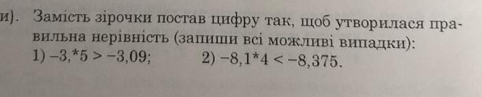 2) -8,124<-8,375 (если в это равенство мы поставим любое число от 0 до 9, то оно все равно не будет верным, так как в отрицательных числах меньшее число всегда больше большего, поэтому этот пример мы решить не можем)