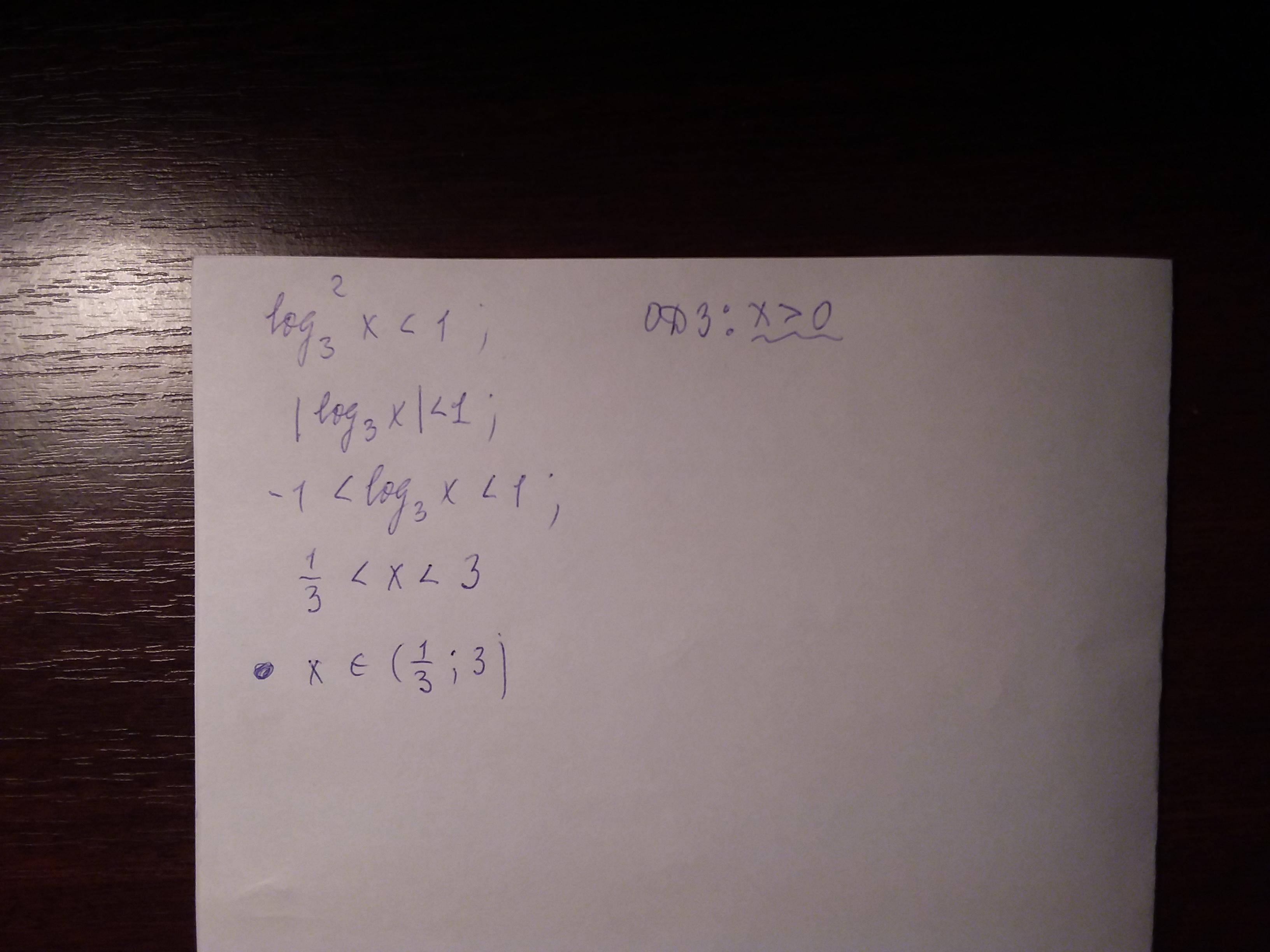 (логарифм икса по основанию три, над логарифмом показатель степени 2 и все это меньше единицы)