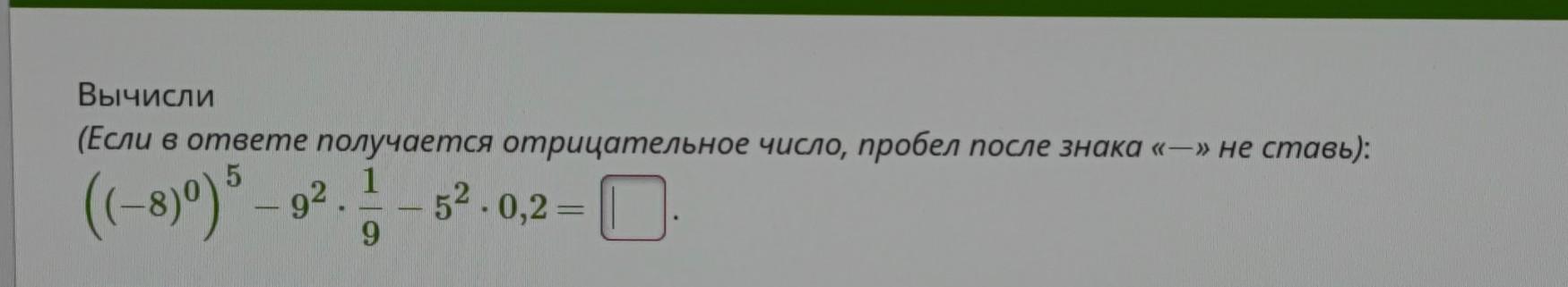Вычисли (Если в ответе получается отрицательное число, пробел после знака «—» не ставь): 5 1 (° (1-8)9) - 92.5 -52.0,2=