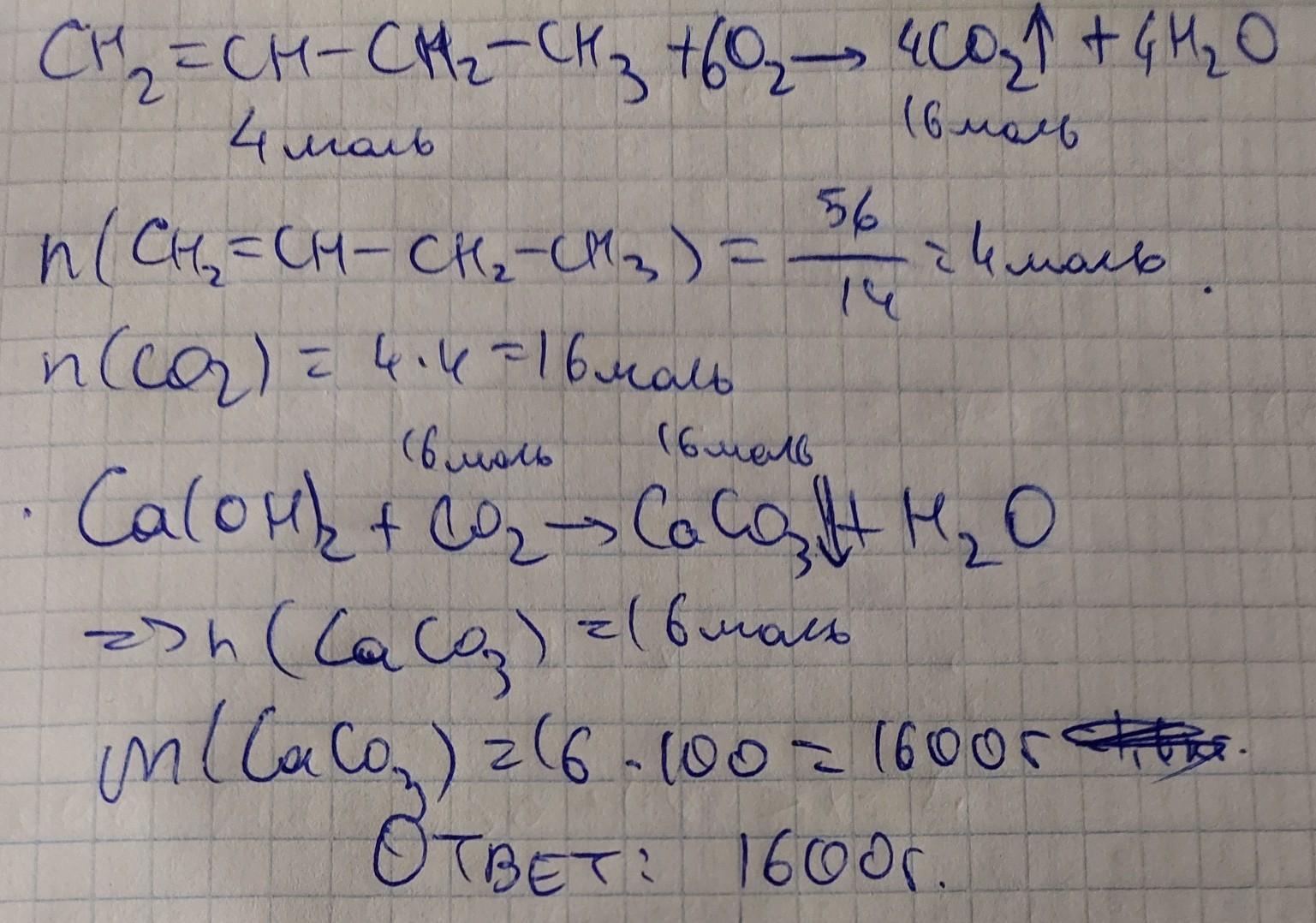 углекислого газа, полученного при сгорании 14гр бутен-1 через