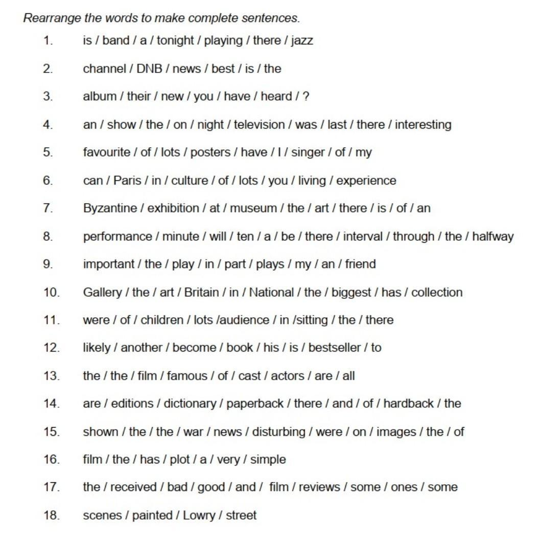 Постройте правильно предложения(правильный порядок слов), заранее спасибо, Делать только с 5 по 18,с 1 по 4 не нужно