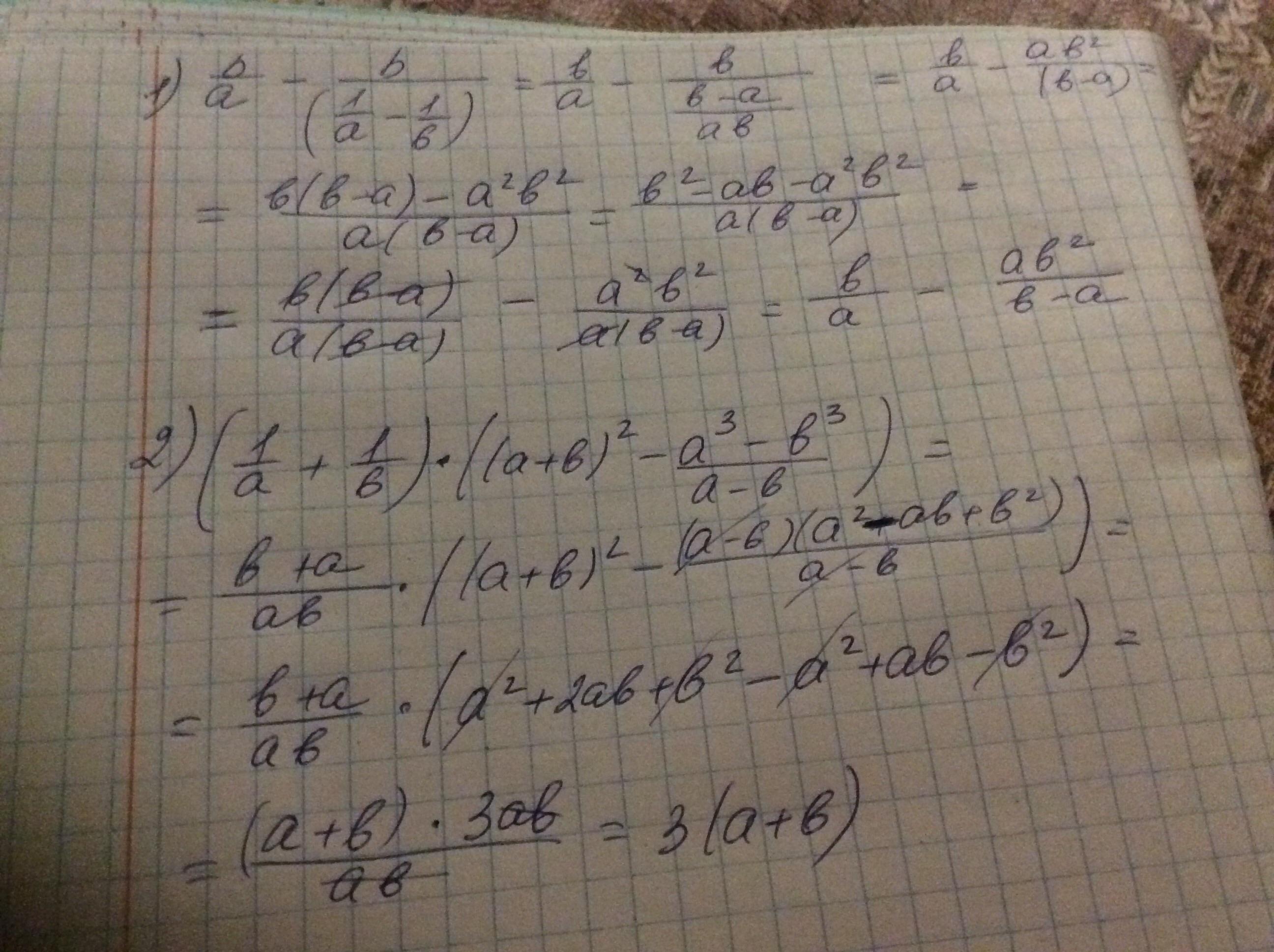 2) (1/a+1/b)*( (a+b)^2-a^3-b^3/a - b).