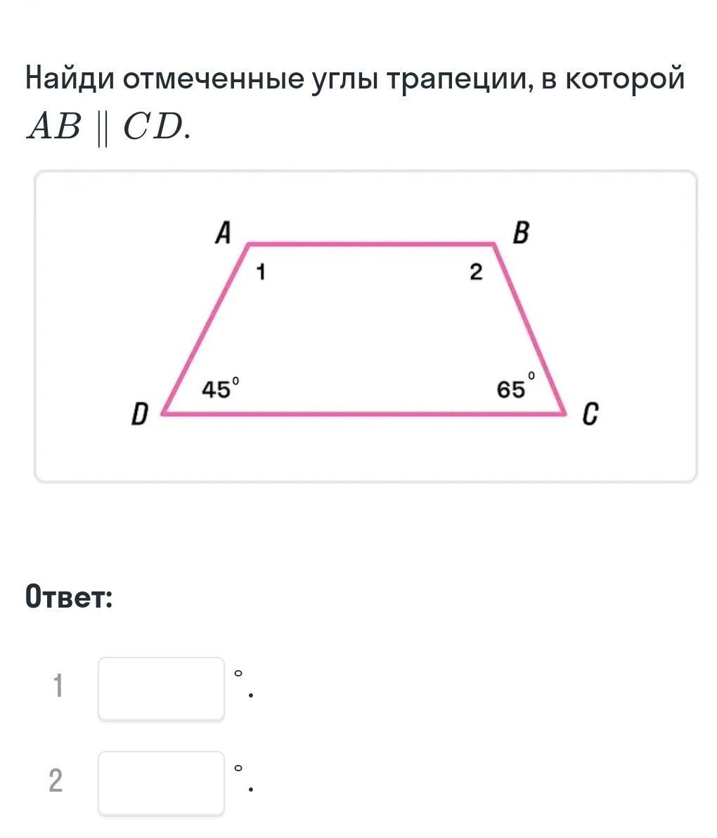 ∠1 + 45° = 180° и ∠2 + 65° = 180°.