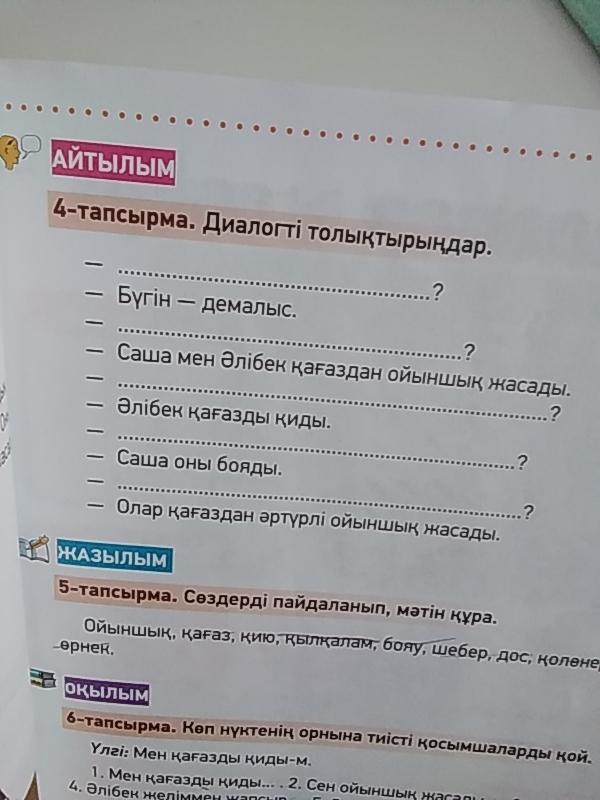 -Саша мен Әлібек қағаздан ойыншық жасады.
