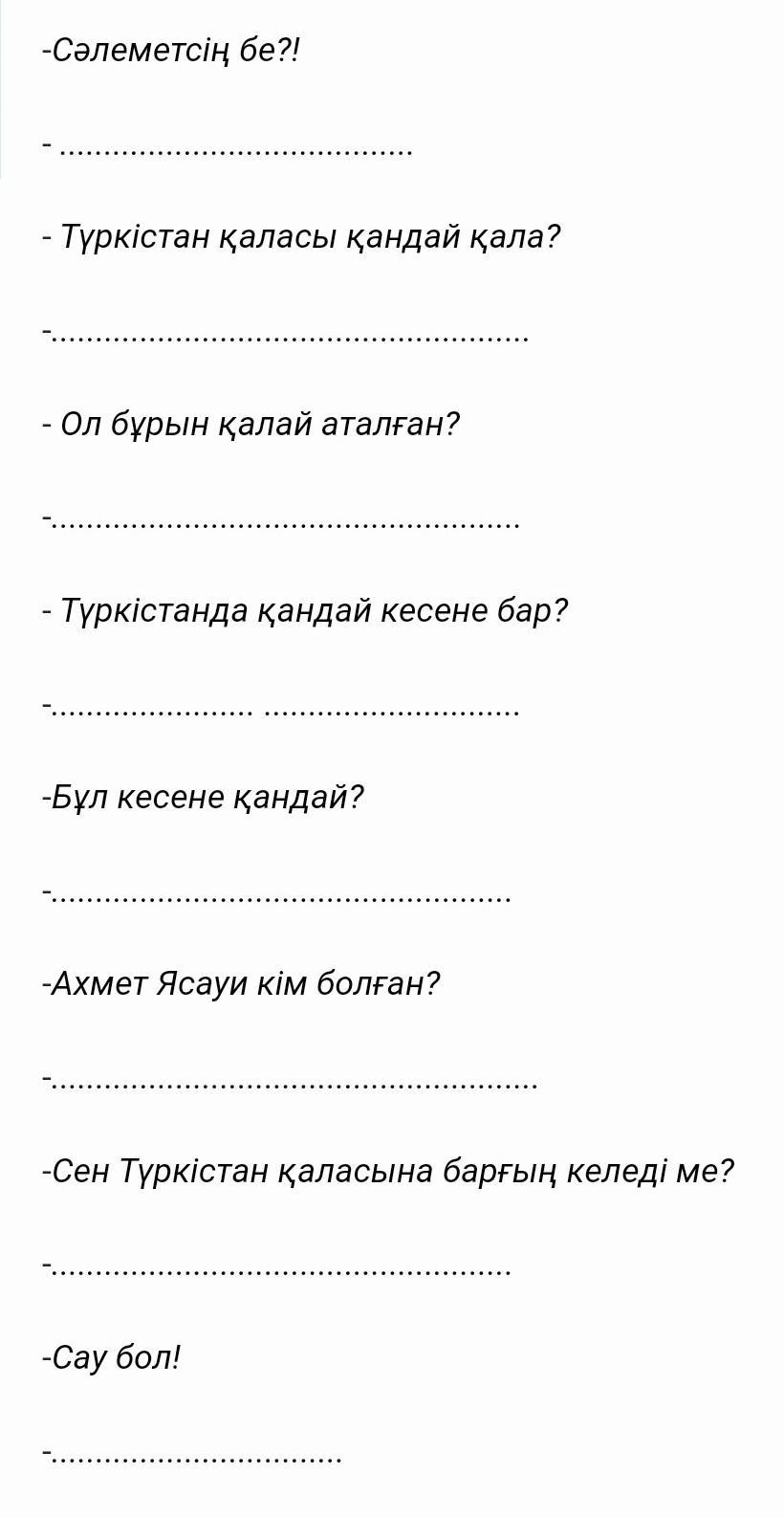 -Ия , мен Түркістан қаласына саяхат жасап ,Ахмет Яссауи кесенесіне барғым келеді