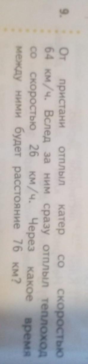 1) 64-26= 38 км/ч - скорость удаления катера от теплохода