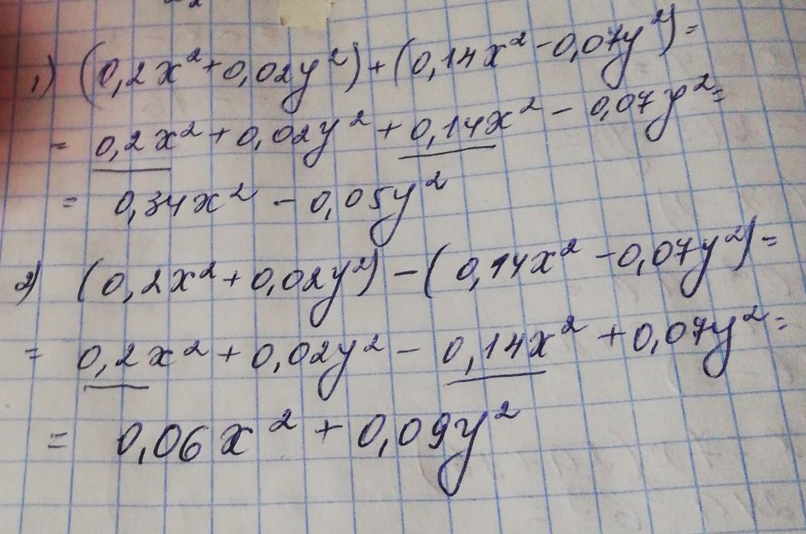 (0,2x² + 0,02y²) - (0,14x² - 0,07y²) =