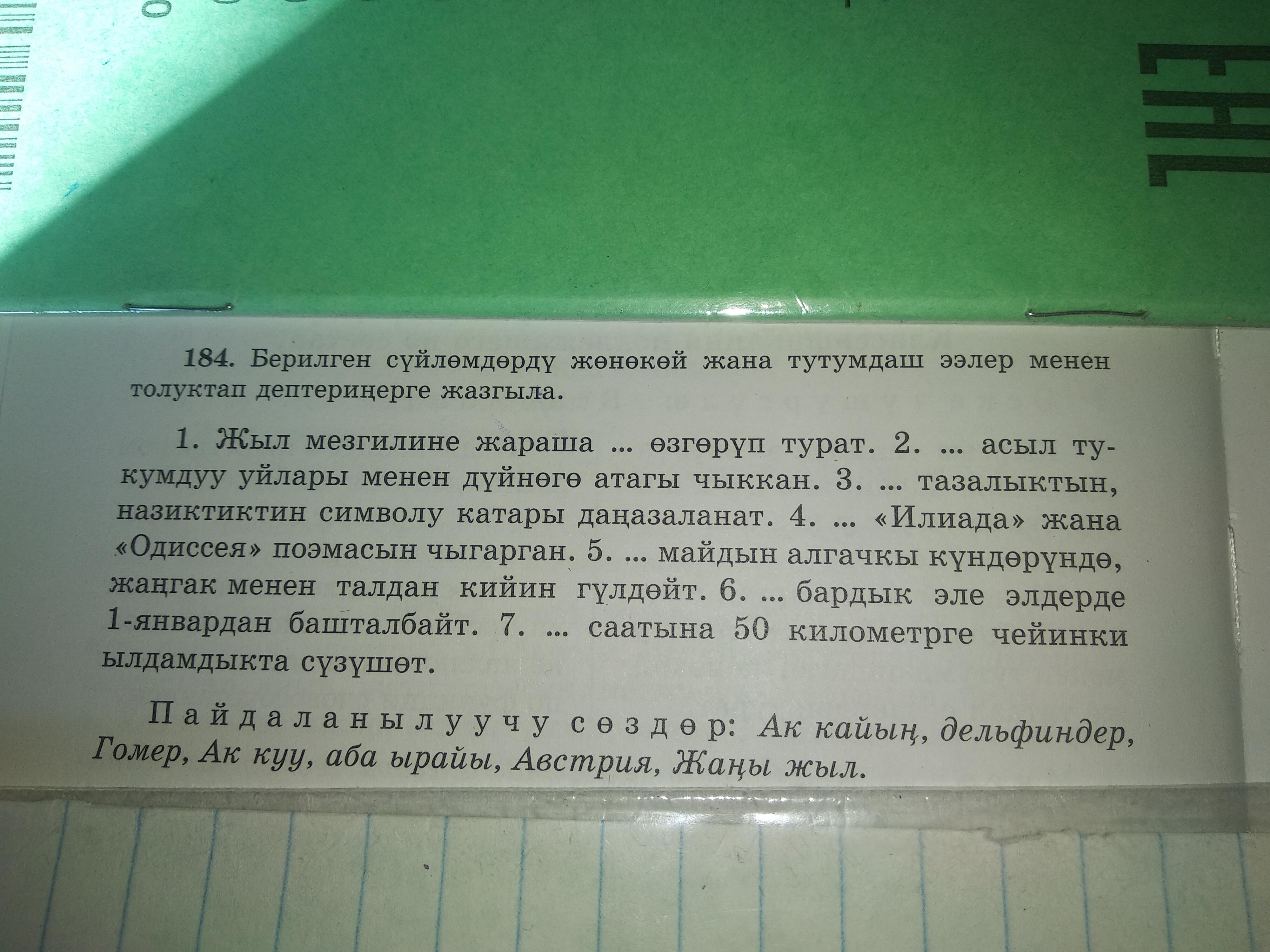 СРОЧНО ПОМОГИТЕ ПОЖАЛУЙСТА 184-көнүгүү Берилген сүйлөмдөрдү жөнөкөй жана тутумдаш ээлеп менен толуктап дептериңерге жазгыла. ЗАПЛАЧУ 50 БАЛЛОВ