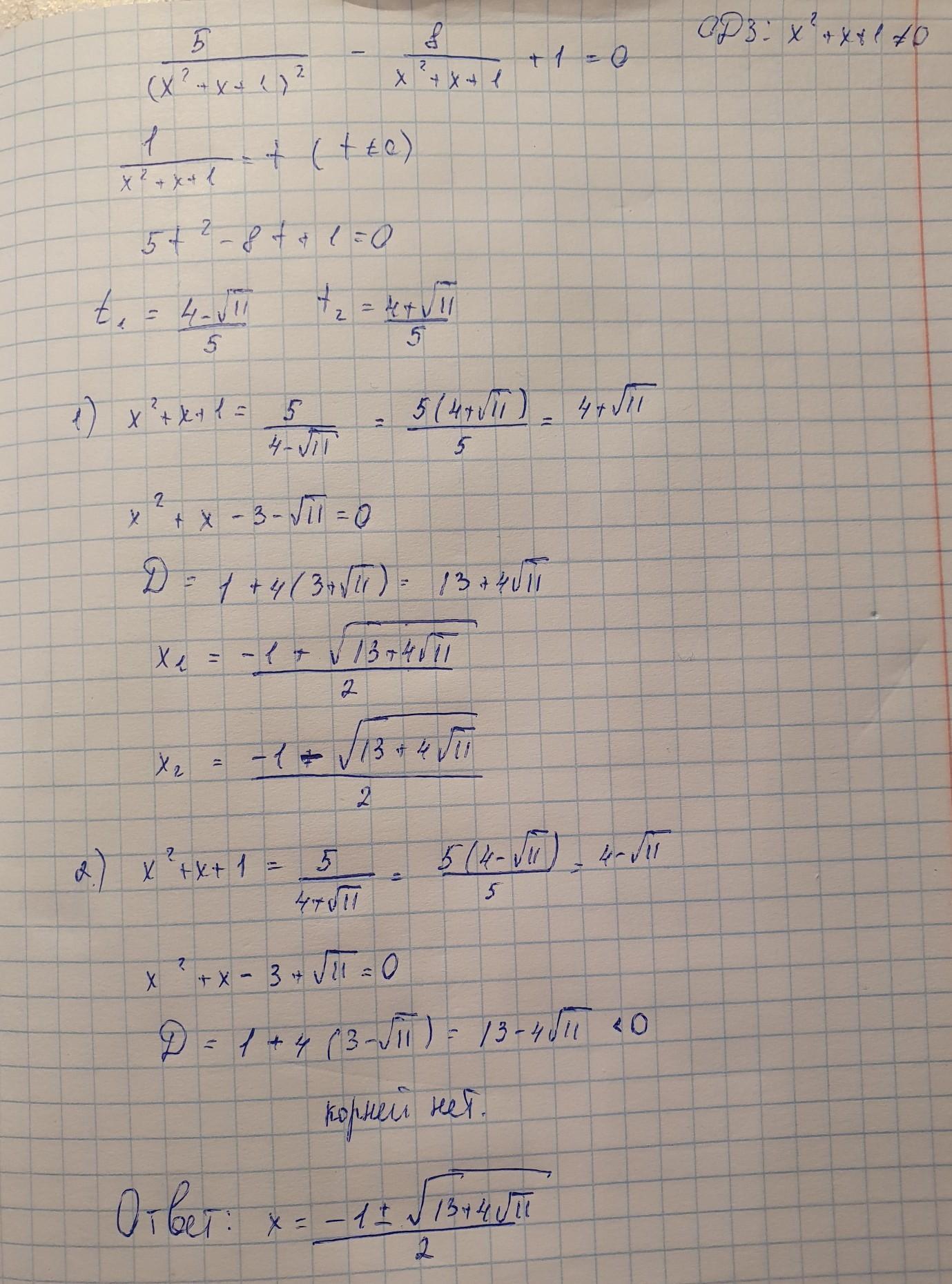 5/(х^2+х+1)^2 - 8/х^2+х+1=0 Внизу фото прикреплю данного уравнения.