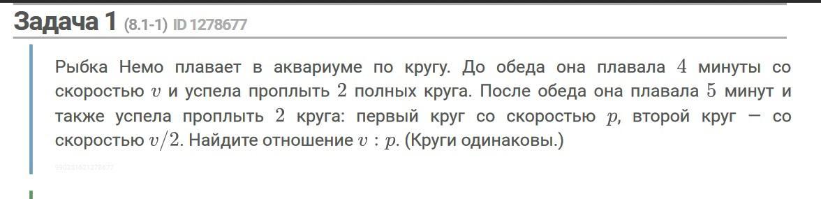 Тогда: S = p*1 => 2v = p => v:p = 1/2.