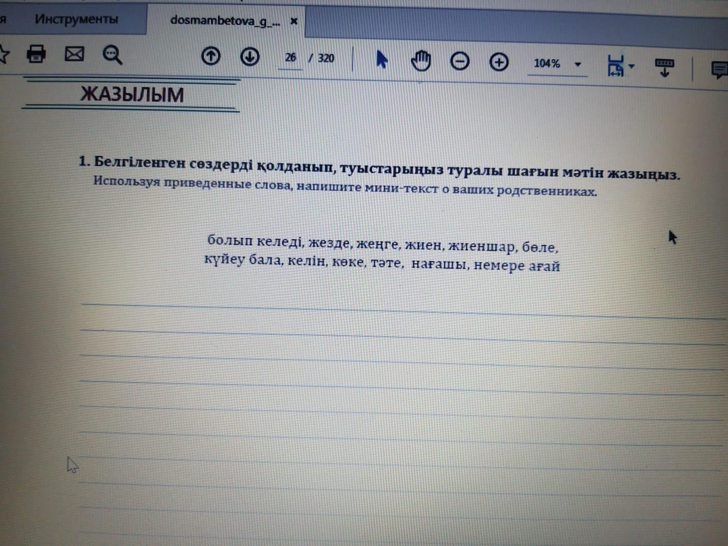 менің жездеммен жеңгем өте жаксы адамдар.Менің анамның туыстары маған нағашы болып келеды.Ал мен оларға жиенмын.Менің тәтем бар,ол 10 сыныпта окиды.Ол маған ылғида көмектеседі.Менын озыме уксаган жалгыз болем бар.Бөлем ол еңбеккер.