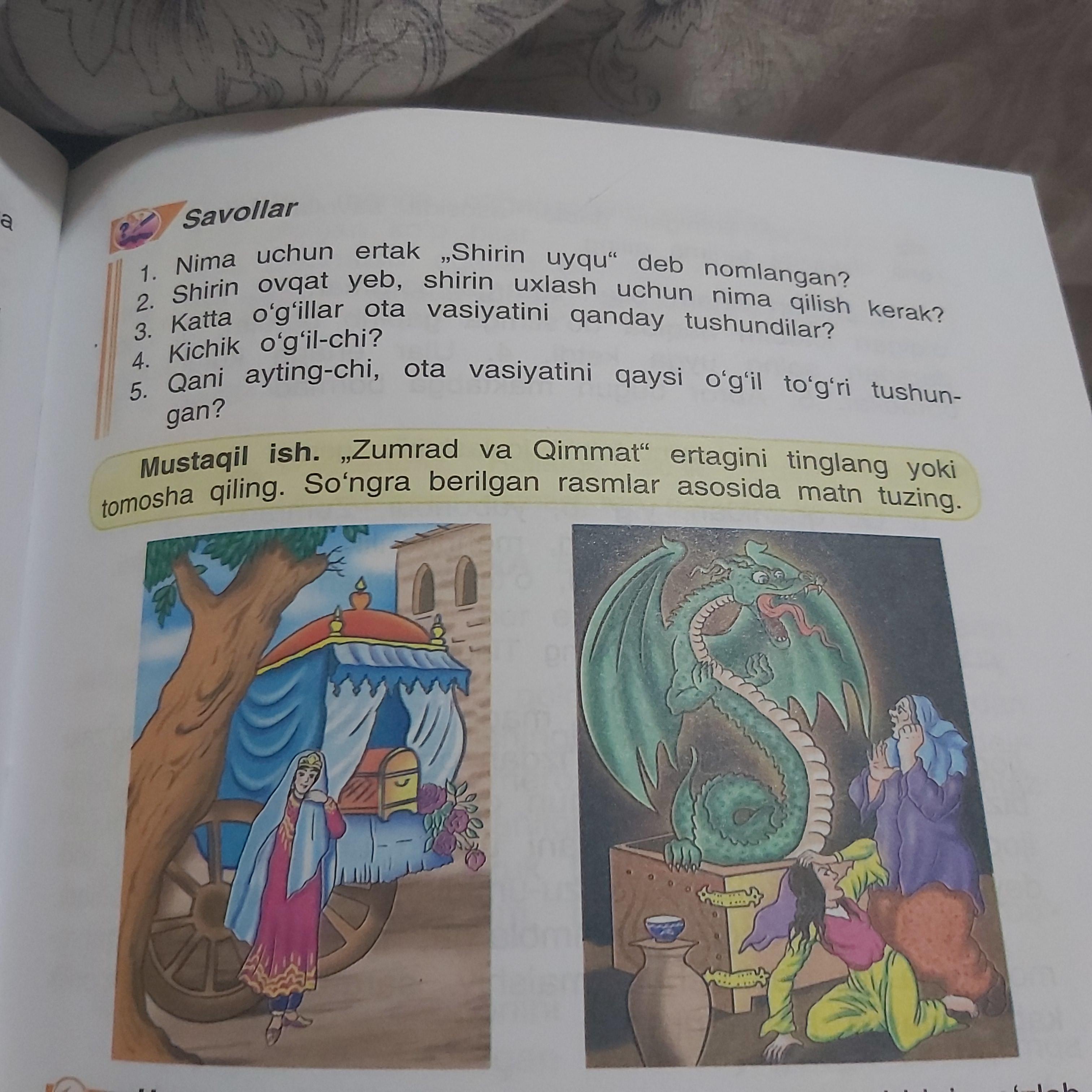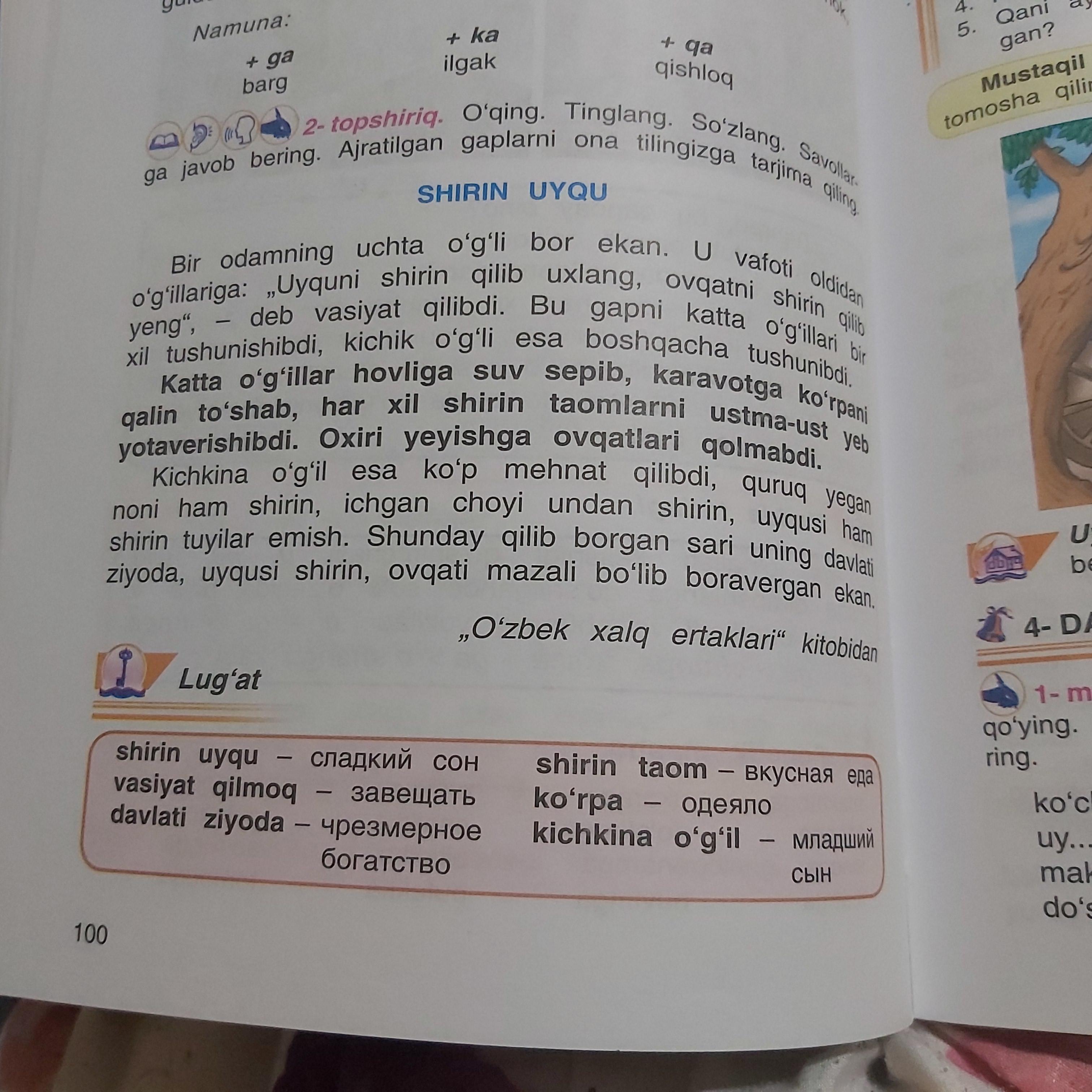 За 100 балов, очень срочно Помогите ответить на вопросы. 5 класс узбекский язык страница 101