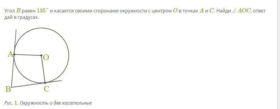 ∠АВС ИЗМЕРЯЕТСЯ ПОЛУРАЗНОСТЬЮ БОЛЬШОЙ ДУГИ АС (⊇АС) И ⊃АС⇒(⊇АС-⊃АС)/2=135°⇒