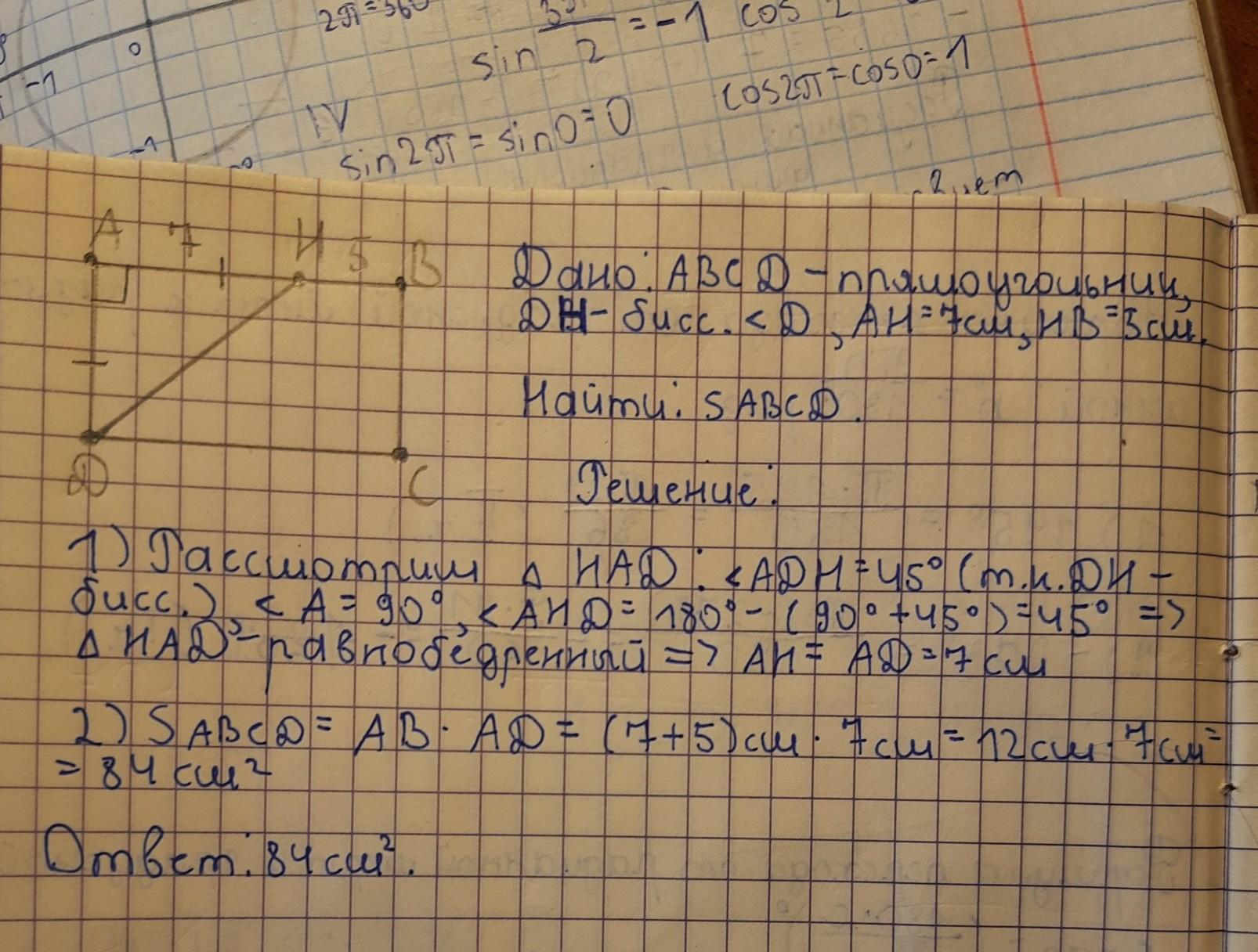 Площадь прямоугольника равна произведению AB и ВС (BC = 7+5=12)
