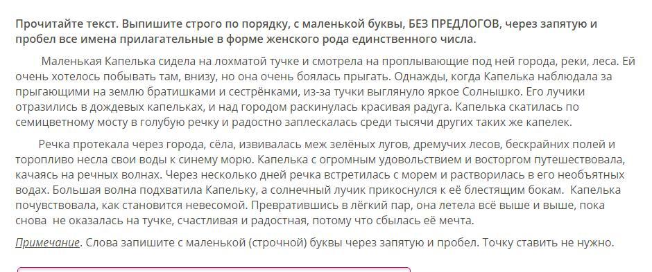 помогите с русским языком. надо выписать из текста без предлогов все имена прилагательные женского рода в единственном числе