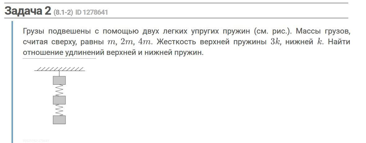 На верхнюю пружину действуют два груза: массой 2m и массой 4m. На нижнюю пружину действует груз 4m