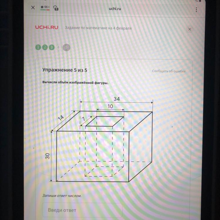 V=Vполное - V внутренние = 30*34*14-7*10*30 = 12 180 ед в Кубе