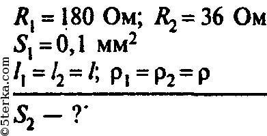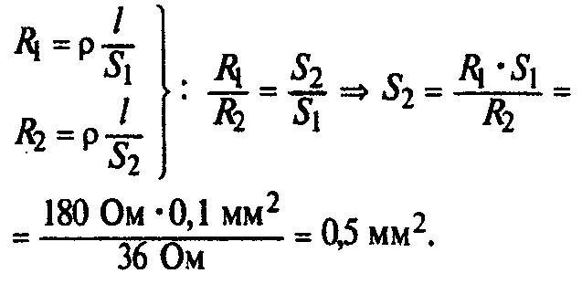 6. Сопротивление проволоки, у которой площадь поперечного сечения 0,1 мм2, равно 180 Ом. Какой площади поперечного сечения надо взять проволоку той же длины и из того же материала, чтобы получить сопротивление 36 Ом?