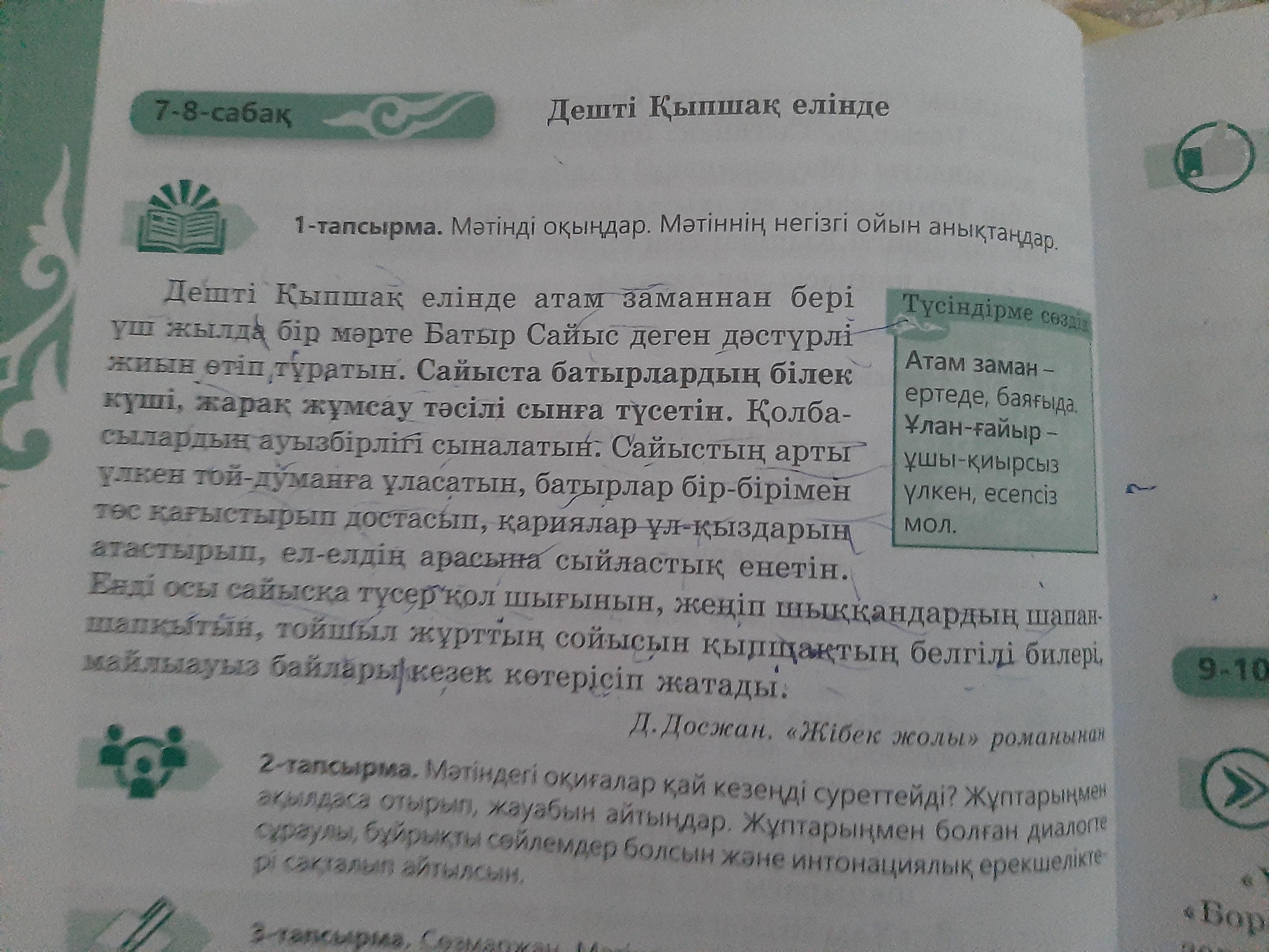 Содержание текста связано с традицией, эта традиция называется состязанием батыров, это состязание показывает, насколько хорошо богатыри состязались и владели оружием. Он делает свадьбу и надевает на победителя шапан.