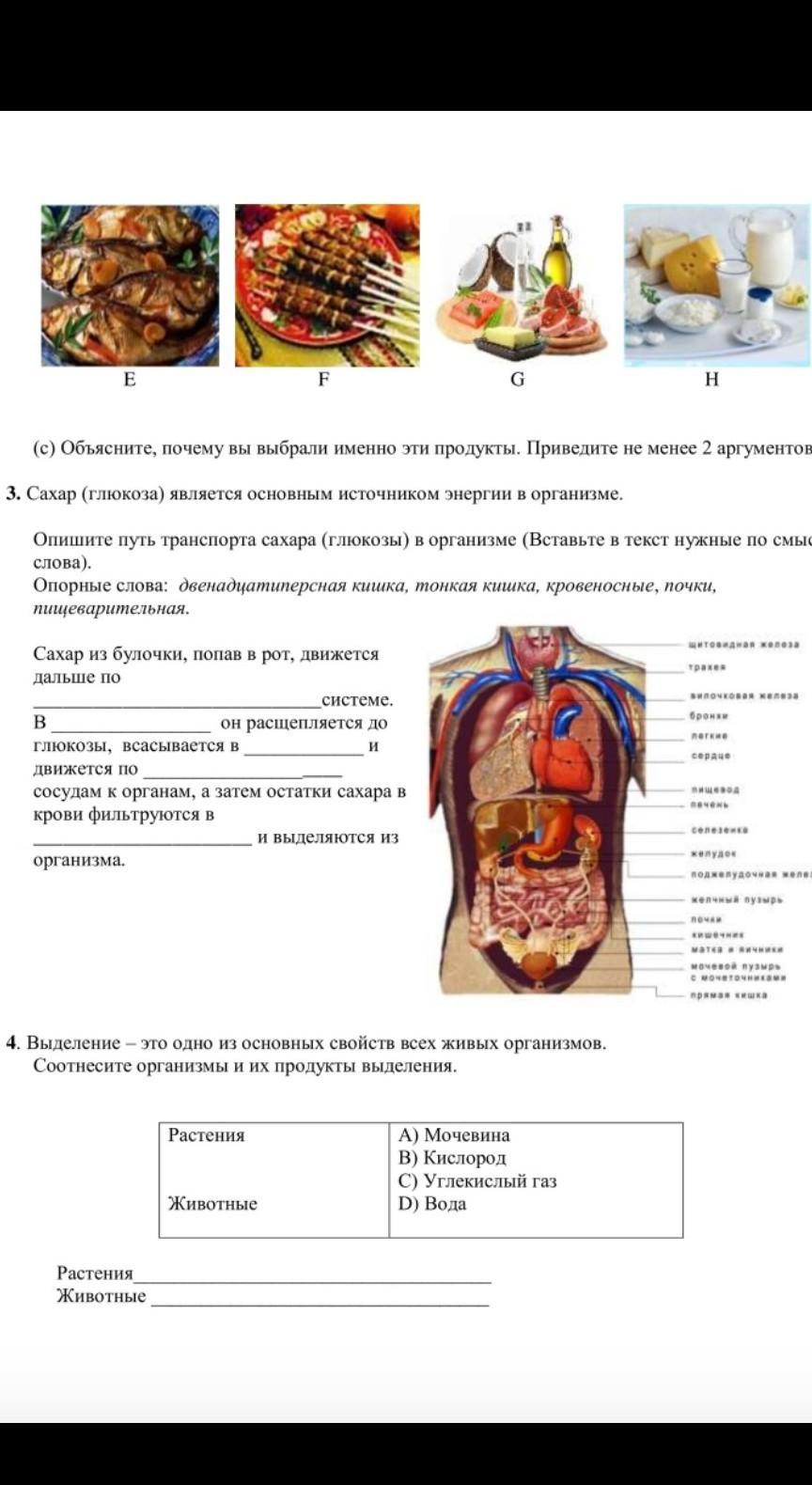 Сахар из булочки попав в рот движется дальше по пищеварительной системе. В двенадцатиперстной кишке он расщепляется до глюкозы, всасывается в тонкую кишку и движется по кровеносным сосудам к органам, а затем остатки сахара в крови фильтруются в почках и выделяются из организма.