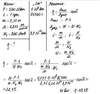 500 МВт, якщо кожну добу вона витрачає 2,35 кг 92 U.