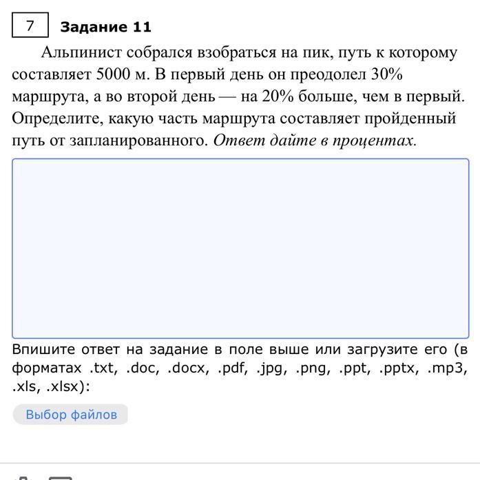 Определим, сколько прошел альпинист в первый день: