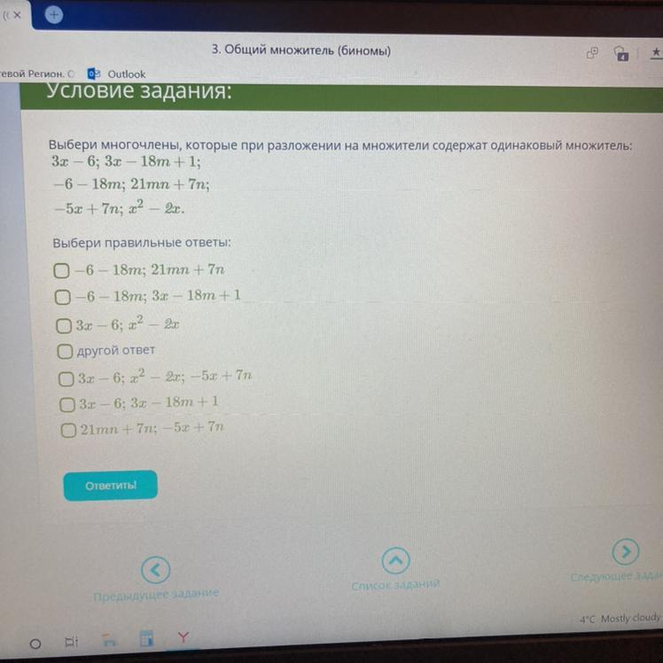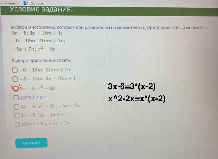 выбери многочлены, которые при разложении на множители содержат одинаковый множитель: