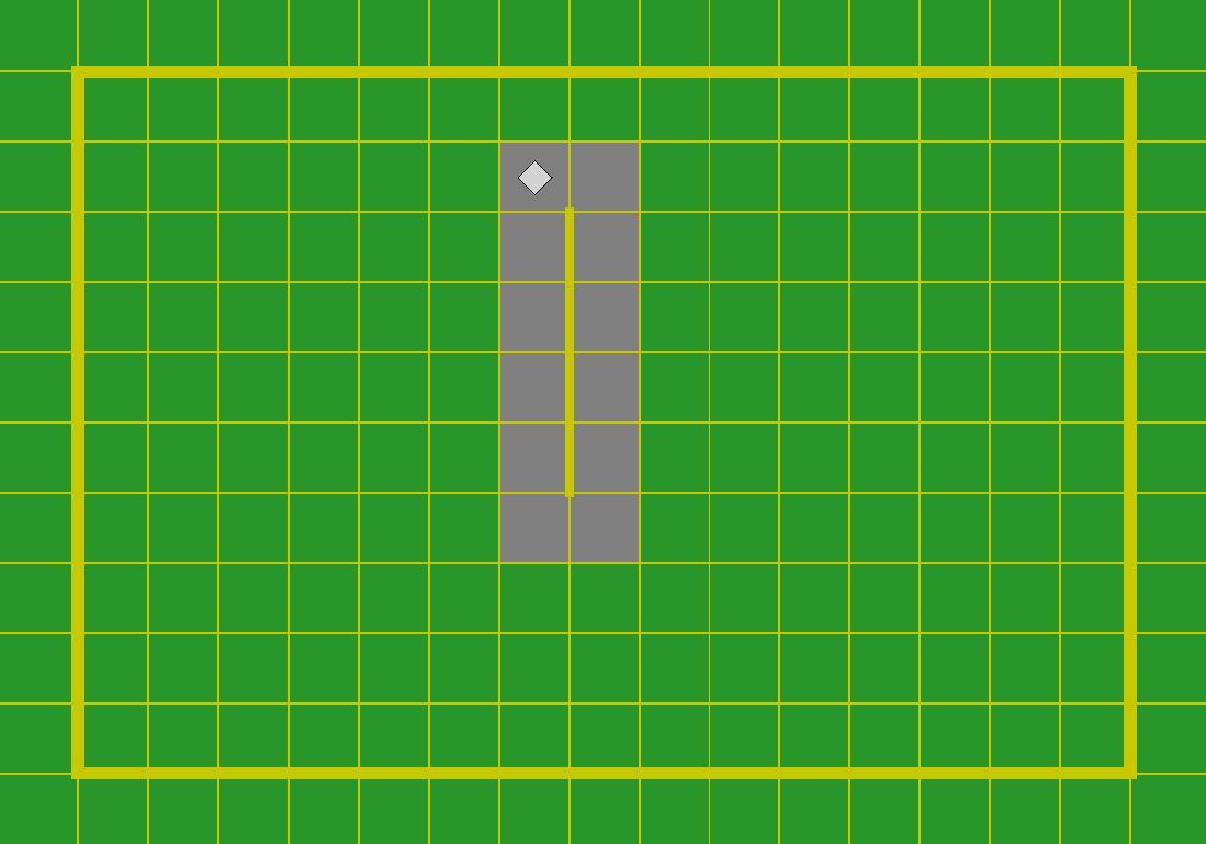 где-то в поле Робота находится вертикальная стена, размеры которой неизвестны. Робот из верхнего левого угла поля должен дойти до стены и закрасить все клетки вокруг нее. Пример результата работы программы показан на рисунке