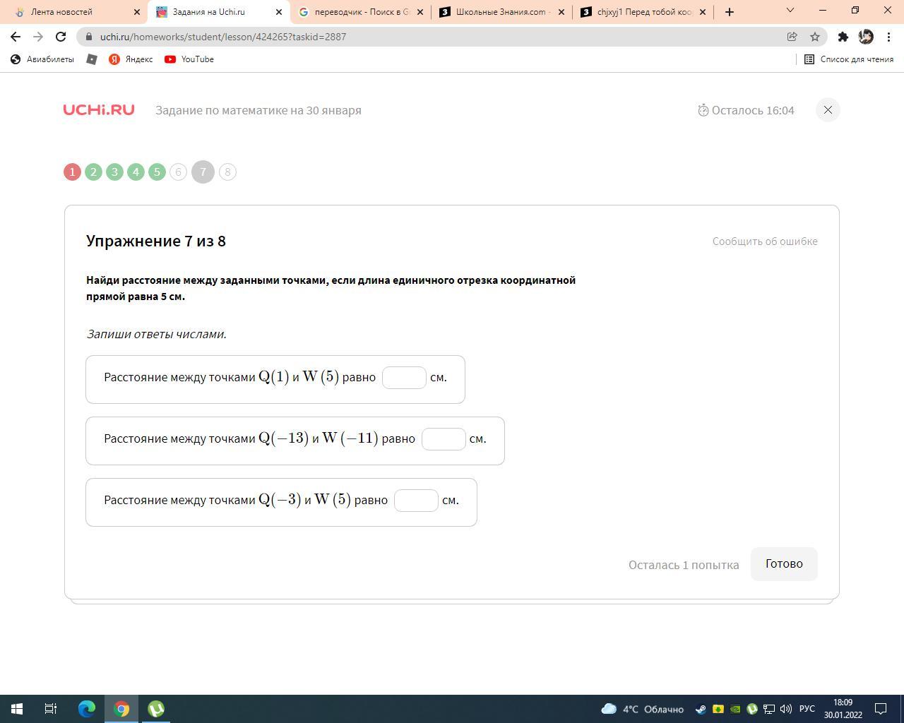 Найди расстояние между заданными точками, если длина единичного отрезка координатной прямой равна 5 см.
