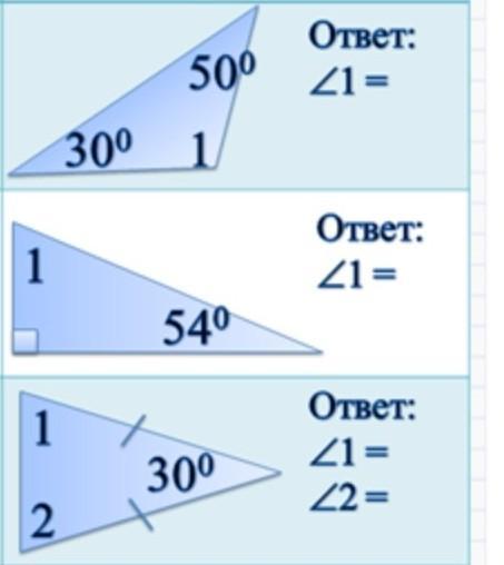 1) 30°+50°+∠1 = 180° (по свойству угл. треуг.)